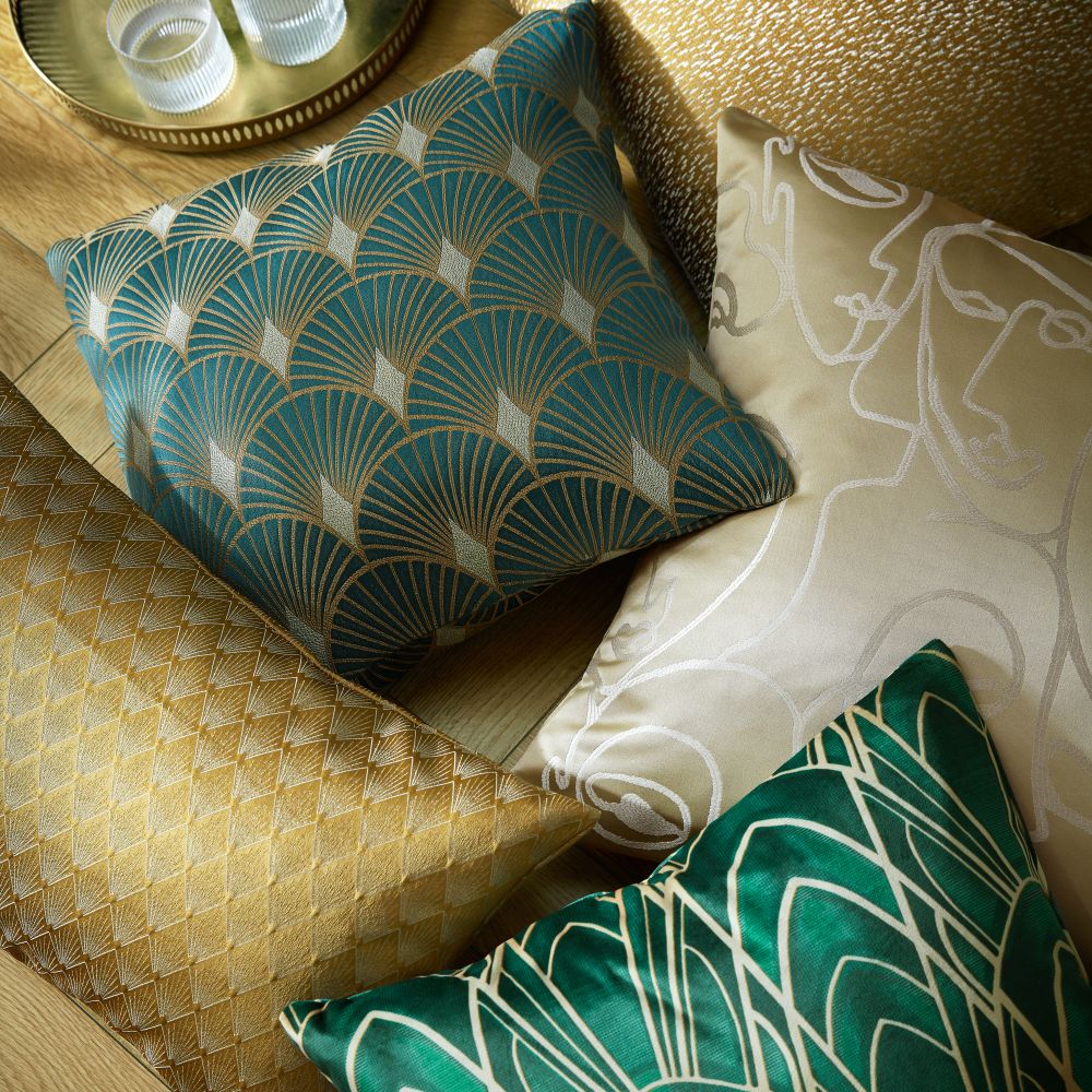 Компания Visage воплотила в себе гламур и изысканность бурных двадцатых годов, создав коллекцию бархата с принтами и тканых тканей в стиле ар-деко. Архитектурные формы сочетаются с мелкомасштабной геометрией, сочетающейся с металлическими нитями и жаккардами с разнообразной текстурой. Компания Henri предлагает современный свободно струящийся линейный портретный жаккард в сочетании с бархатом с цифровой печатью Delaunay, который прекрасно подходит для обивки мебели, штор и подушек. В коллекции декадентские тона изумруда и сапфира дополняются мягкими нейтральными оттенками, такими как шампанское и серебро.