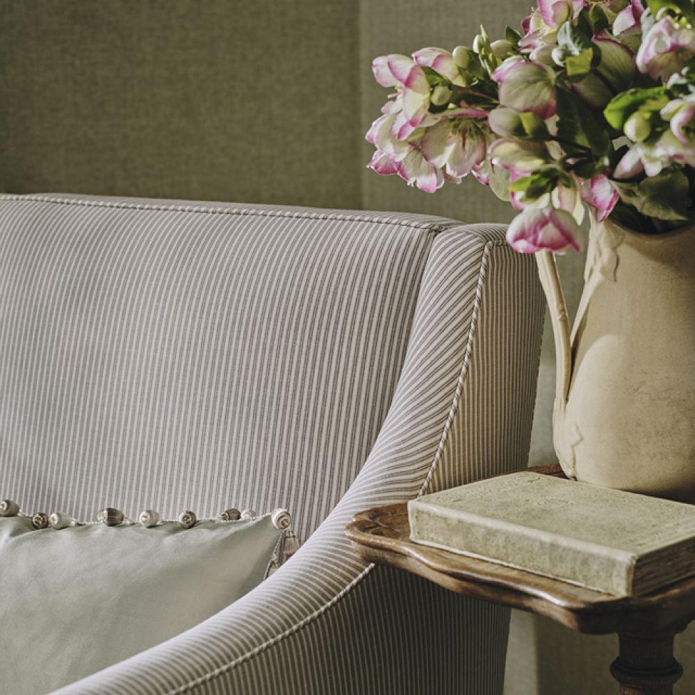 Эта популярная ткань в тонкую полоску сочетает в себе хлопковую основу и льняной уток, благодаря чему получается ткань, обладающая как структурностью, так и естественным характером. Тонкая полоска придает ткани изысканный, неподвластный времени вид, который легко вписывается в любой интерьер. Универсальная и простая в использовании, она станет идеальным дополнением к более декоративным и фактурным тканям, придав любому интерьеру сбалансированность и утонченность.