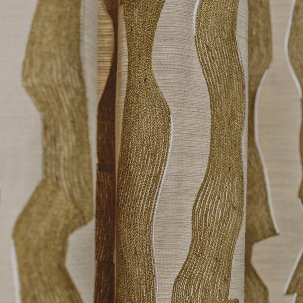Ткань Bayu, вышитая однотонными нитями на хлопковом полотне, украшена геометрическим узором, который создает богатую игру текстур и объемных форм. Эта изысканная ткань, сочетающая в себе структуру и мягкость, привносит в интерьер ощущение непринужденной изысканности.