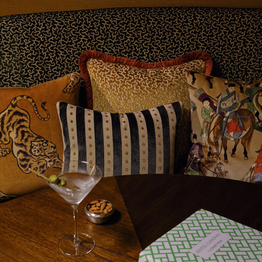 Этот трехцветный бархат, напоминающий по элегантности классический французский текстиль, сочетает в себе чередующиеся полосы и нежные игривые горошины. Контраст матовой и блестящей текстур придает изделию особую тактильную привлекательность и придает дизайну особый шарм.