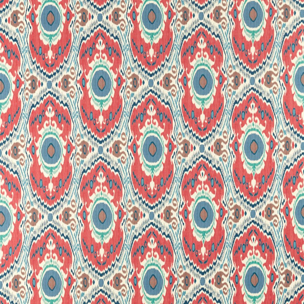 Благодаря смелым цветам и сложному рисунку, характерному для шелков икат, которые ткут в Узбекистане, этот красочный разнонаправленный повторяющийся мотив нанесен на прекрасный хлопковый атлас двойного назначения.